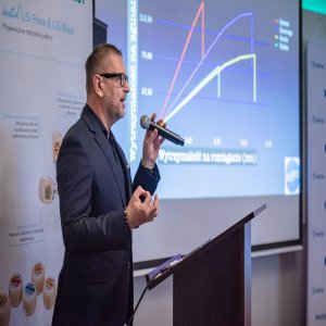 Międzynarodowy trener Shofu – tech. dent Tomasz Dąbrowski wygłosił wykład – Kompleksowe rozwiązania gwarantujące skuteczność i przewidywalne efekty pracy z tlenkiem cyrkonu.